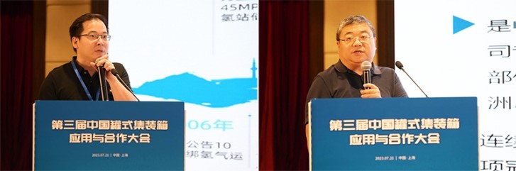 在主題演講環(huán)節(jié),中鐵鐵龍?zhí)胤N箱物流事業(yè)部箱資產(chǎn)管理部負(fù)責(zé)人欒黎強(qiáng)分享了鐵路罐箱運(yùn)輸發(fā)展現(xiàn)狀及對(duì)未來(lái)戰(zhàn)略的思考。中國(guó)船級(jí)社集裝箱檢驗(yàn)中心上海分中心業(yè)務(wù)總監(jiān)廖英勇介紹了中國(guó)船級(jí)社助力罐箱應(yīng)用標(biāo)準(zhǔn)化和智能化所開(kāi)展的工作。中集安瑞科控股有限公司科技創(chuàng)新中心總經(jīng)理李東主題演講中分享了氫能裝備的發(fā)展現(xiàn)狀及應(yīng)用案例。中集安瑞環(huán)科技股份有限公司研究院院長(zhǎng)孟慶國(guó)介紹了新興產(chǎn)業(yè)引領(lǐng)罐箱定制化發(fā)展的情況。